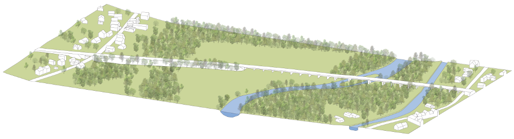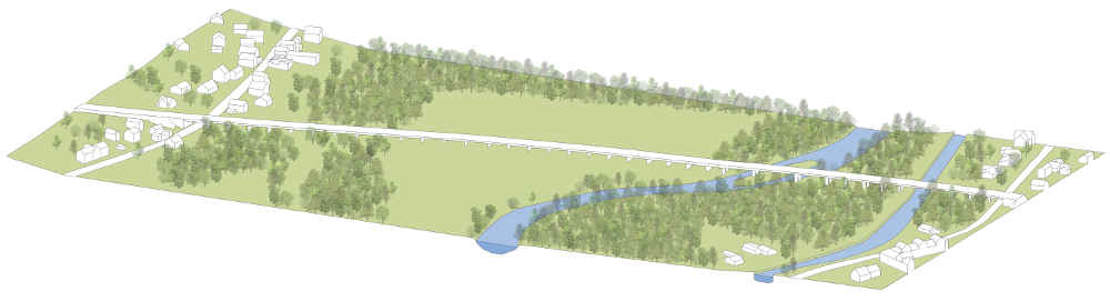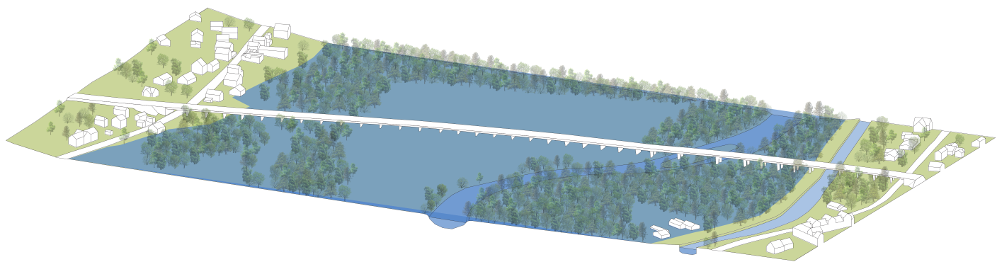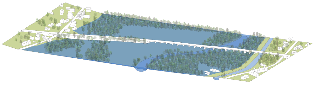 Lors de l’analyse des zones inondables, il est apparut comme un goulot d’étranglement en amont de la ville de Moret-sur-Loing. Cette ponctuelle diminution de la largeur de la zone inondable causée par un remblai pour surélever la départementale 606 pose un gros problème pour l’évacuation de l’eau en cas d’inondation. Si on modifie le franchissement de la route en remplaçant le remblai par un viaduc continue sur la zone inondable on favorise une bonne évacuation des volumes d’eau qui permet de réduire le temps d’inondation de la zone.