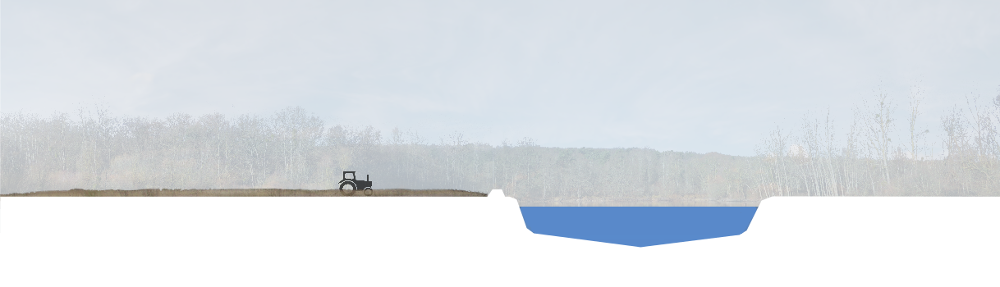 Ces roselières sont principalement composées de roseau, mais également de massette ou de jonc. Pour se développer, une roselière a besoin d’être submergée au minimum de 5cm et jusqu’à 1m. On crée une pente douce qui va permettre d’inonder cette bordure sur une superficie importante. Sur cette coupe est représentée la variation annuelle du niveau de l’eau qui est d’environ 1m.