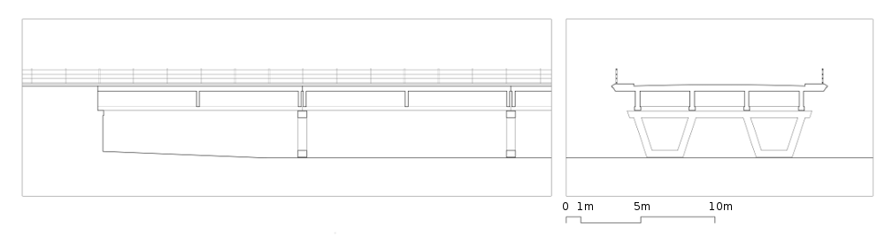Le viaduc existant est constitués de tabliers préfabriqués posés sur des supports en béton armé. On démonte les tabliers liés au remblai, puis on défait le remblai pour ensuite placer les nouveaux supports et les nouveaux tabliers qui vont raccorder la route.