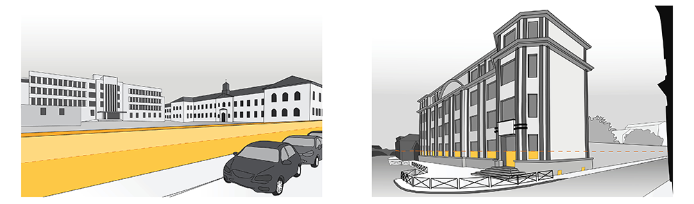 Tout comme les logements, les bâtiments publics peuvent être adaptés aux inondations. La plupart des édifices publics de Montereau se trouvent dans la ville basse. Il y a trois écoles au bord de la Seine. Une partie de l'hôptial, la bibliothèque, la Communauté de Communes, l'église et le conservatoire se trouvent dans un zone à risque +2m d'inondation. Avec les micro-interventions nous pouvons protéger les parties internes des bâtiments et donc leurs usagers. En creusant la ceinture verte le long du bord de la Seine, le niveau d'inondabilité des bâtiments baisse et ils sont ainsi mis en securité. Le reste des bâtiments publics dans le centre-ville peut être sauvegardés grâce à des systèmes de protection permanents ou temporaires. Il existe des barrages et des systèmes amovibles pour empêcher l'eau de pénétrer dans les murs et le périmètre des bâtiments. Chaque bâtiment public devrait être équipé en fonction de son niveau de risque sur le PPRI. Le projet "adapter l'existant" explique les différentes solutions d'adaptation.