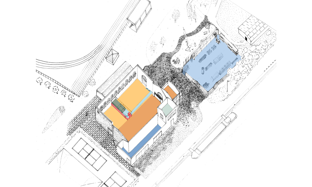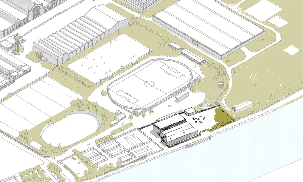 Afin de proposer un programme liant les possibilités financières de l’eurovéloroute et la réorganisation de l’ETIC dans l’idée de redynamiser la ville, nous avons cherché une opportunité foncière qui lierait une proximité avec la Seine et l’espace technologique et industriel, et de préférence un bâti historique des usines Schneider. L’ancienne centrale thermique s’est vite révélée notre meilleure option. Aujourd’hui ce stock des services techniques municipaux de 560m² présente le grand avantage d’être déjà propriété communale et d’être assez grand pour accueillir nos propositions. Nous avons donc conçu une installation dans le temps long en son sein.