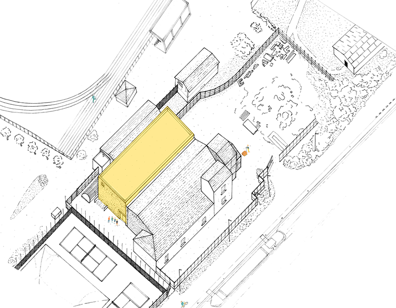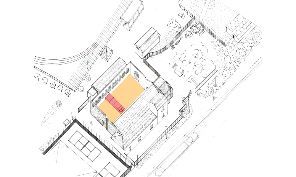 Une première étape voit l’aménagement d’environ 200m² d’ateliers d'auto-réparation et récupération de vélos dans la partie nord de l’édifice. Cette activité gagne aujourd'hui de nombreux adeptes dans les grandes villes où le vélo est une alternative écologique et pratique intéressante à la voiture. On pense par exemple aux Cyclofficines à Paris, Pantin et Ivry-sur-Seine. Nous prenons le pari de voir se développer ce phénomène en zone périurbaine, notamment dans le cadre d'une intégration intercommunale, telle que souhaitable dans la CCMSL.
