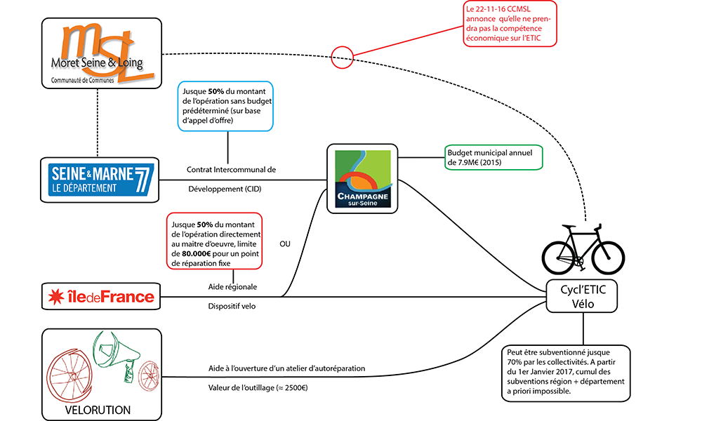 Les ateliers vélo profitent des financements régionaux à hauteur de 80.000€ (dispositif "velo"), et certainement du soutien de l’association Vélorution (enveloppe d'environ 2500€ pour trousse à outils de base).