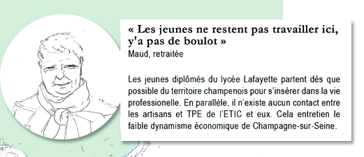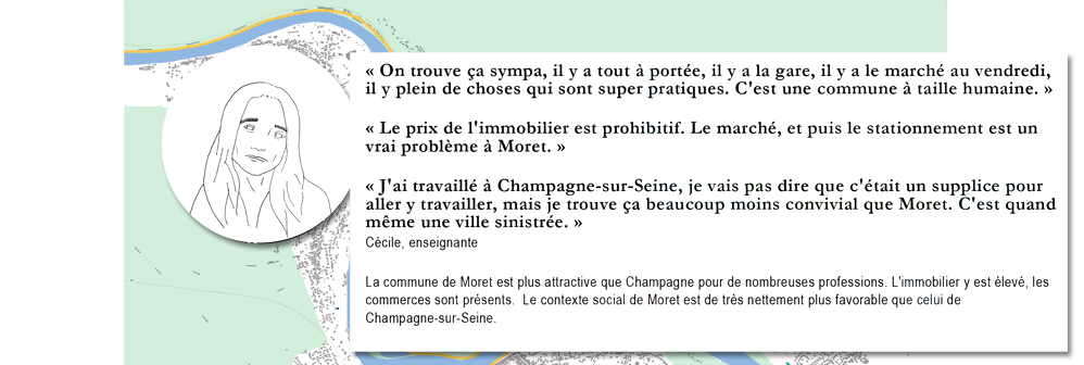 L'activité économique est au cœur des rivalités entre Champagne et Moret. La zone d'Activités de Renardières, à Moret, entre en concurrence avec l'ETIC. Les enquêtes auprès des habitants concernant leur perception du territoire intercommunal nous indiquent que cette opposition reste vraie pour eux : il y a « ceux de Moret » qui montreraient du dédain pour les Champenois, et la ville « sinistrée » de Champagne, de laquelle on s'enfuit pour ne pas y revenir. Au sein de Champagne même, le principal problème semble avoir été la dissolution du lien social depuis la fermeture des usines. Une grande partie des Champenois est tributaire du transport quotidien à Paris.