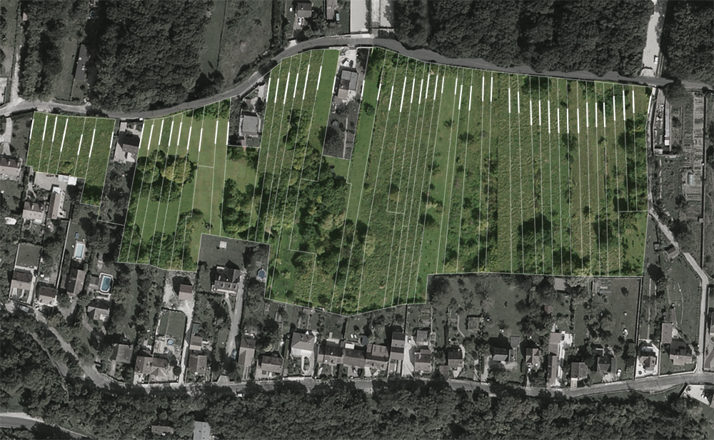 La mairie a un droit de regard sur ce qui se construit sur sa commune. Elle a donc un pouvoir de régulation urbaine. Une stratégie alternative serait de faire de ces terrains un lotissement communal, soumis à des critères écologiques dans la construction. L’aménagement du site est guidé par un souci de préservation de la végétation existante et une volonté d’intervention minime sur les sols. En préservant le parcellaire laniéré du site hérité de son passé viticole, les maisons seraient implantées en tête de parcelle, à la fois pour minimiser l’extension des |