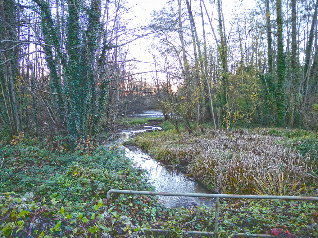 Lors de fortes pluies, la rivière entre en crue et provoque d'importantes inondations, le bassin ne possédant pas de dispositifs pour gérer un débit d'eau trop important. Le projet consiste à créer trois renfoncements en contrebas de l'étang pour accueillir, lorsque que ce dernier déborde, l'eau en surplus. Des conduits les relient les uns aux autres jusqu'aux conduites souterraines en aval. Les trois bassins ont des superficies respectives de 1274 m², 578 m² et 1968 m² et, avec une profondeur de 80 cm, peuvent accueillir au total 3056 m³ d'eau.